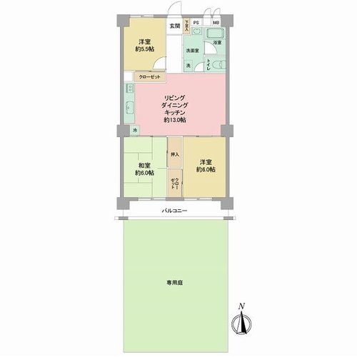 の広々とした専用庭付き住戸