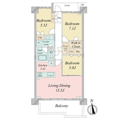 ?3LDK住居 専有面積77.67m