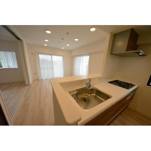 内装リフォーム、システムキッチン、フローリング張替、対面式キッチン、南西向き、エレベーター内装リフォーム、システムキッチン、フローリング張替、対面式キッチン、南西向き、エレベーター
