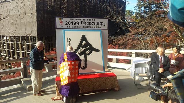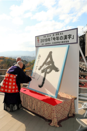 日本汉字能力检定协会于12月12日,在京都市的清水寺公布了自全国范围募集而来的“今年的汉字”--“令”字当选2019年代表汉字。
