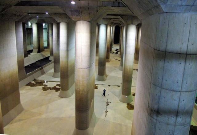 据江户川河川事务所表示:“首都圈外郭放水路”是流淌于地下50米处的世界最大级放水路。全长6.3公里。当邻近的5条河川水位上涨时,调压水槽便会蓄水。从12日下午6点开始,5条合川的水全部流入放水路。据悉,当日5条河川均上涨至标准水位以上,这种情况实属罕见。